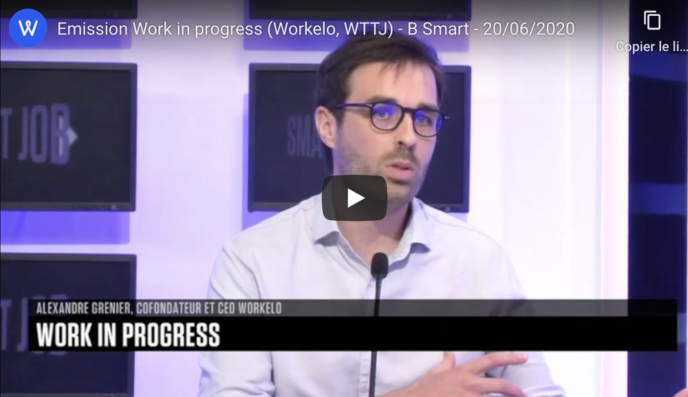 [Replay] Workelo de passage dans l'émission TV 'Work in progess' (06/2020) Témoignage • 22 juin 2020 Sur la vidéo ci-dessous retrouvez notre passage à l'émission TV 'Work in progress' sur la nouvelle chaine B Smart. Nous y présentons Workelo, notre vision des enjeux RH et partageons autour des sujets Onboarding / Offboarding. Bonne lecture ! Mots clés Témoignage Alexandre Grenier CEO @Workelo - Workelo est la solution n°1 pour l'Onboarding et l'Offboarding digital de vos collaborateurs. Déjà des dizaines de clients convaincus (EDF, Saint-Gobain, Banque Casino, Mazars,...) 🚀 Recommandé pour vous Onboarding Onboarding : Comment La Banque Postale a augmenté la satisfaction des nouvelles recrues de 52% à 78% grâce à Workelo il y a un an • 5 min de lecture Témoignage “Innovations RH: comment les intégrer ?” par Guillaume Petit, Kering il y a 7 ans • 1 min de lecture Témoignage “L’intégration : un sujet seulement startup ?” par Laurence Cosson, Orange il y a 8 ans • 1 min de lecture